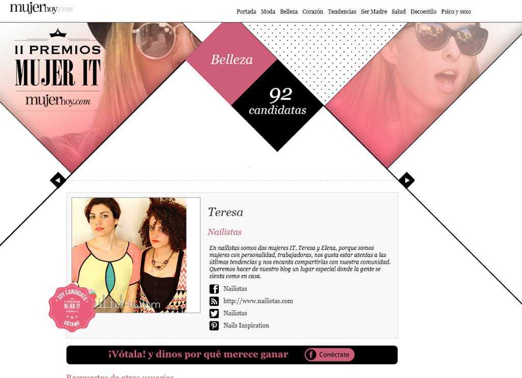 ¡Muchísimas gracias a todas las que nos habéis votado! Estamos encantadas con las cosas tan bonitas que decís de nosotras :_) ¡Muchiiiiiisimos besos!