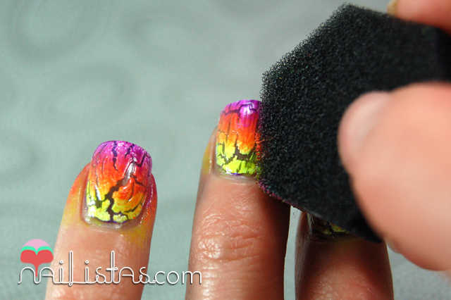 me ha parecido una idea super super buena, siempre había visto el degradado pero al contrario: un degradado de base y un crackelado negro encima :)
